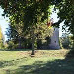 Kaj hitro smo se odpravili proti gradu Kalc do katerega vodi Krpanova pohodniška pot. Stolp in ruševine gradu stojijo v nasadu starodavnih lip, do njega pa med velikimi travniki, kjer se pasejo konji, vodi star kostanjev drevored.