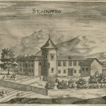 Vodička Alenka Vebrova nam je nekoliko razložila zgodovino tega gradu (nemško Steinberg, Stemberg izg. »kalc« ali »kauc«), ki stoji v bližini Knežaka, nedaleč od izvira reke Pivke. Grad, od katerega je danes ostal le še ohranjen in obnovljen stolp, stoji na pobočju Brega 618 metrov nad morjem. Prvotni grad, katerega podoba je ovekovečena v Valvasorjevi Slavi Vojvodine Kranjske, je v 17. stoletju zgradila plemiška rodbina Stemberg. Njegov lastnik Volf Ernest pl. Stemberg je grad leta 1686 izgubil, saj je bil dodeljen Mariji Ani kneginji Turjaški. Lastniki gradu so se do sredine 18. stoletja menjavali, ko je naposled grad in gospostvo (beri posestvo) pridobila Frančiška Jožefa baronica Marenzi, ki ga je 1767 prenesla na sina Jakoba Antona, ki je grad in okoliško posestvo leta 1782 prodal na dražbi. Leta 1786 posest pridobi Matej Vilhar, prednik slovenskega skladatelja Miroslava Vilharja, ki je na gradu tudi umrl. Njegova žena Marija Vilhar je leta 1903 posestvo prodala devetim posestnikom iz bližnje vasi Bač.